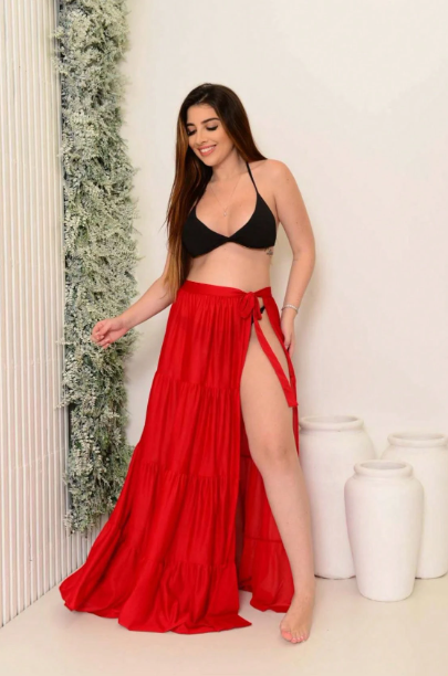 A Saída de Praia Longa estilo saia de amarrar com babado 4 Marias é a escolha perfeita para quem busca leveza, elegância e conforto nos dias mais quentes. Com design fluido e feminino, ela valoriza o visual praiano e combina perfeitamente com biquínis e maiôs.